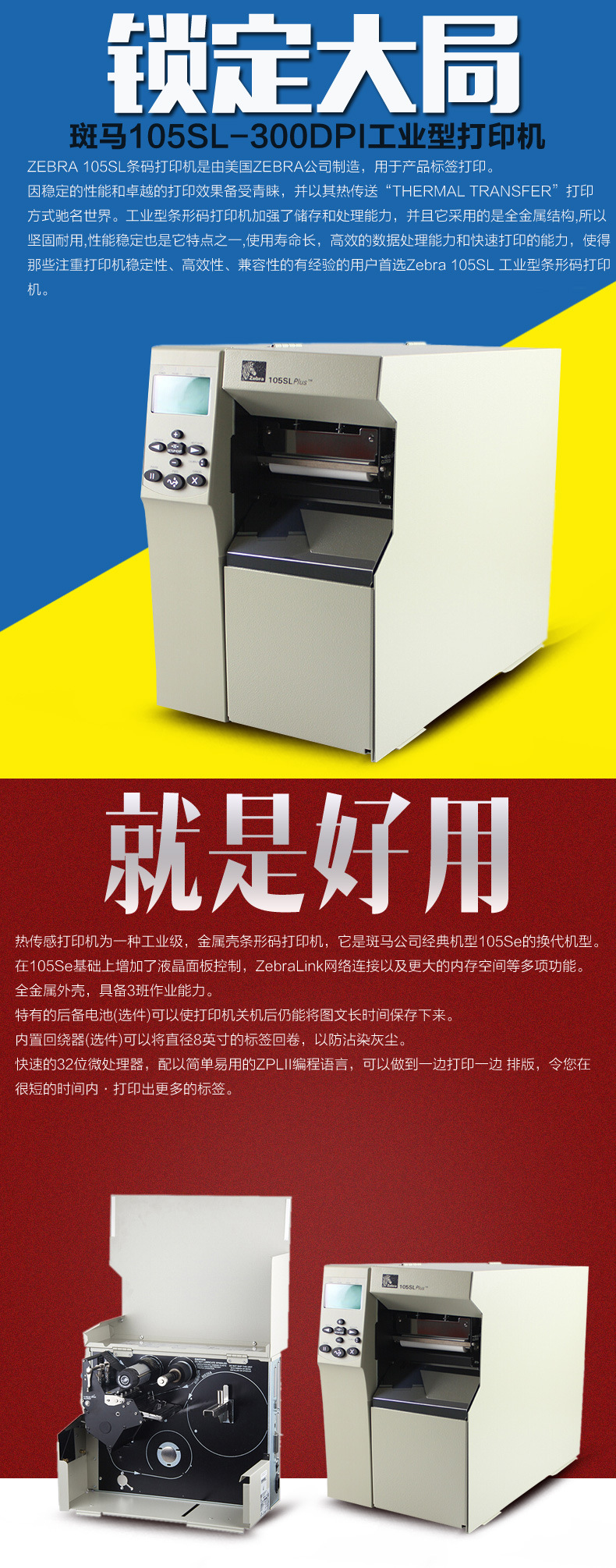 斑马打印机驱动下载ZEBRA斑马105SL-300条码打印机品牌:工商型打印设备型号:ZEBRA 105SL产品名称:工业型条码打印机说明:成熟的工业型条码打印机,全钢结构,提供了卓越的耐久性。可满足工业高标准标签打印的要求。打印头能量均衡技术(E3)的应用,更好的延长了打印头的使用寿命。适用于:服装、工业制造、物流配送等行业。咨