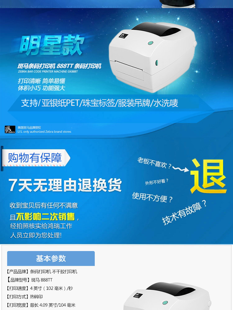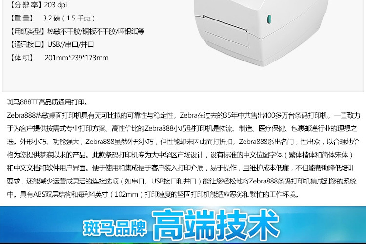 斑马打印机驱动下载ebra GK888t详细参数主要参数介质规格碳带规格其它参数主要参数产品类型桌面打印机分辨率203dpi(8点/毫米)打印方式热敏或热转印打印速度102mm/s最大打印宽度104mm最大打印长度991mm条形码类型一维码:Code 11,Code 39,Code 93,Code 128,UPC-A,UPC-E,EAN-8,EAN-13,EAN-14,UP