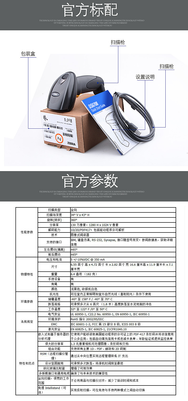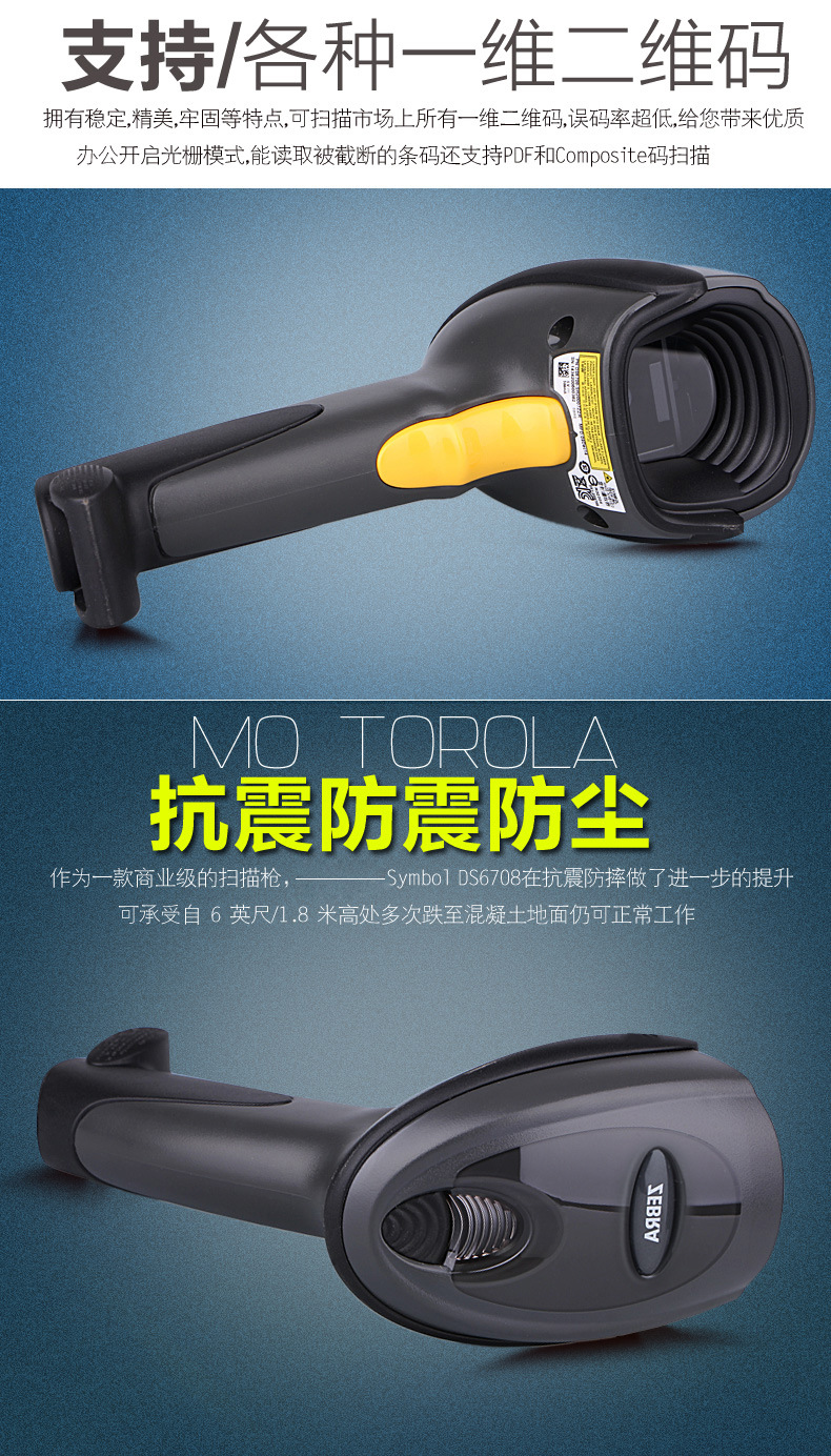 Motorola摩托罗拉讯宝DS6708二维扫描枪手持式扫描器