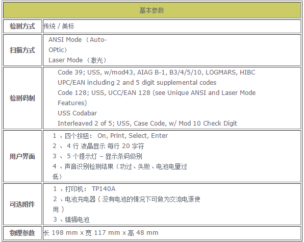 Laser: 配备激光扫描头的D4000是一款极其容易使用的点射扫描器,不需要进行任何的培训,可分析许多基本的条形码参数,进行解码率和解码百分比的计算。