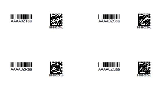 如图,有个条码,起始条码分别是:AAAA100aa,BBBB100bb,100是流水号部分,流水号采用的33进制,2个条码都有前后缀。